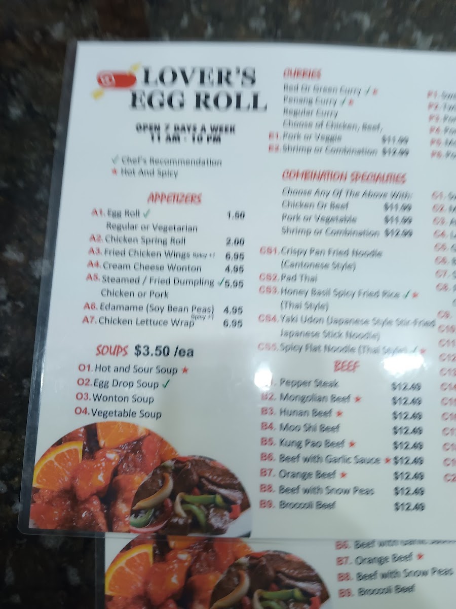 Whether you are a local or just passing through, Lover's Egg Roll promises to deliver tasty, high-quality food that keeps patrons coming back for more—just ask the regulars who call this restaurant their go-to takeout destination.